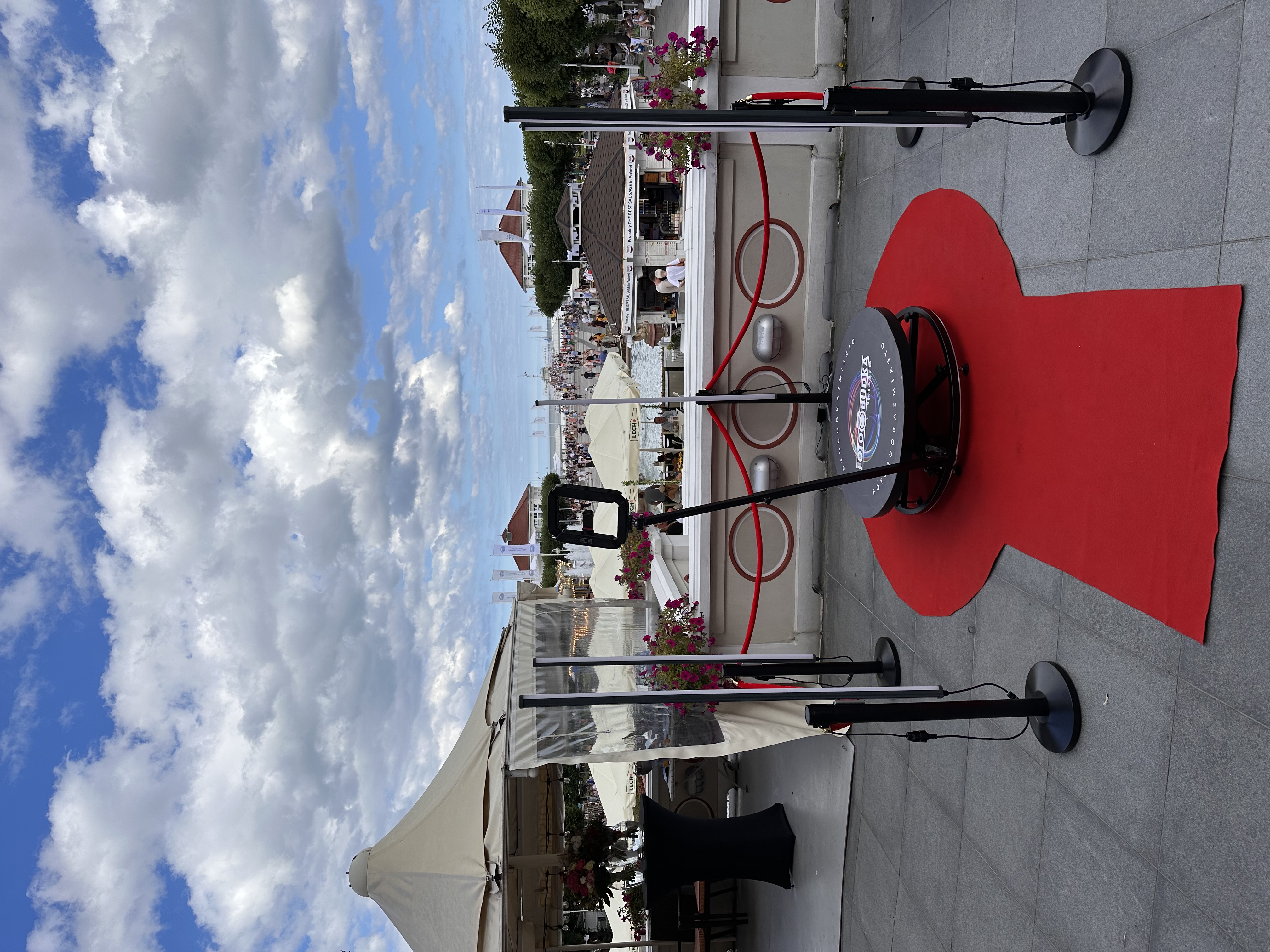 Razem z wideobudką 360 stopni przywozimy czerwony dywan, czarne słupki oraz wysokie lampy LED. Całość tworzy wyjątkowy, stylowy wygląd.